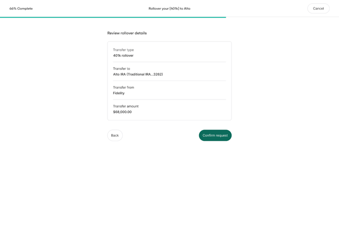 - This step ensures that the rollover type matches your existing Alto IRA account.