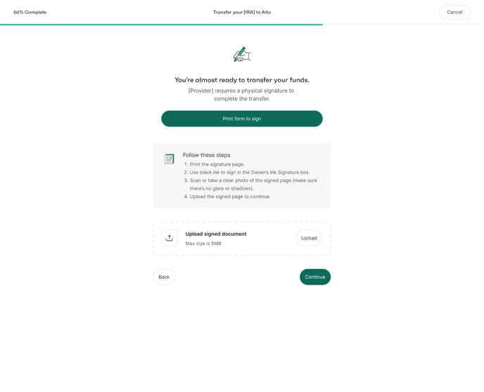Once you’ve completed the IRA Transfer process in your Alto dashboard, we’ll review your request and fax it to your transferring custodian.